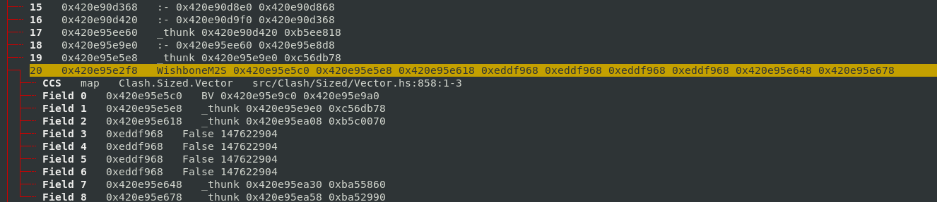 Looking at the source code for the sat_ssVQ thunks, they come from the Clash.Sized.Vector.map function. Therefore…